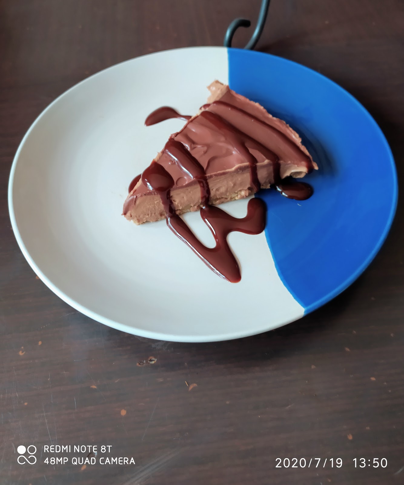 En otro recipiente agregamos el chocolate y metemos al horno de microondas por 30 segundos y empezamos a batir el chocolate, acremamos la crema y empezamos a mezclar crema y chocolate cuando estén bien mezclados se la agregamos al queso crema batimos y cuando todo este cremoso se la agregamos a la base. Lo refrigeramos una hora y preparamos el ganache derretimos los chocolates y agregamos la crema mezclamos bien y cubrimos el cheese cake.